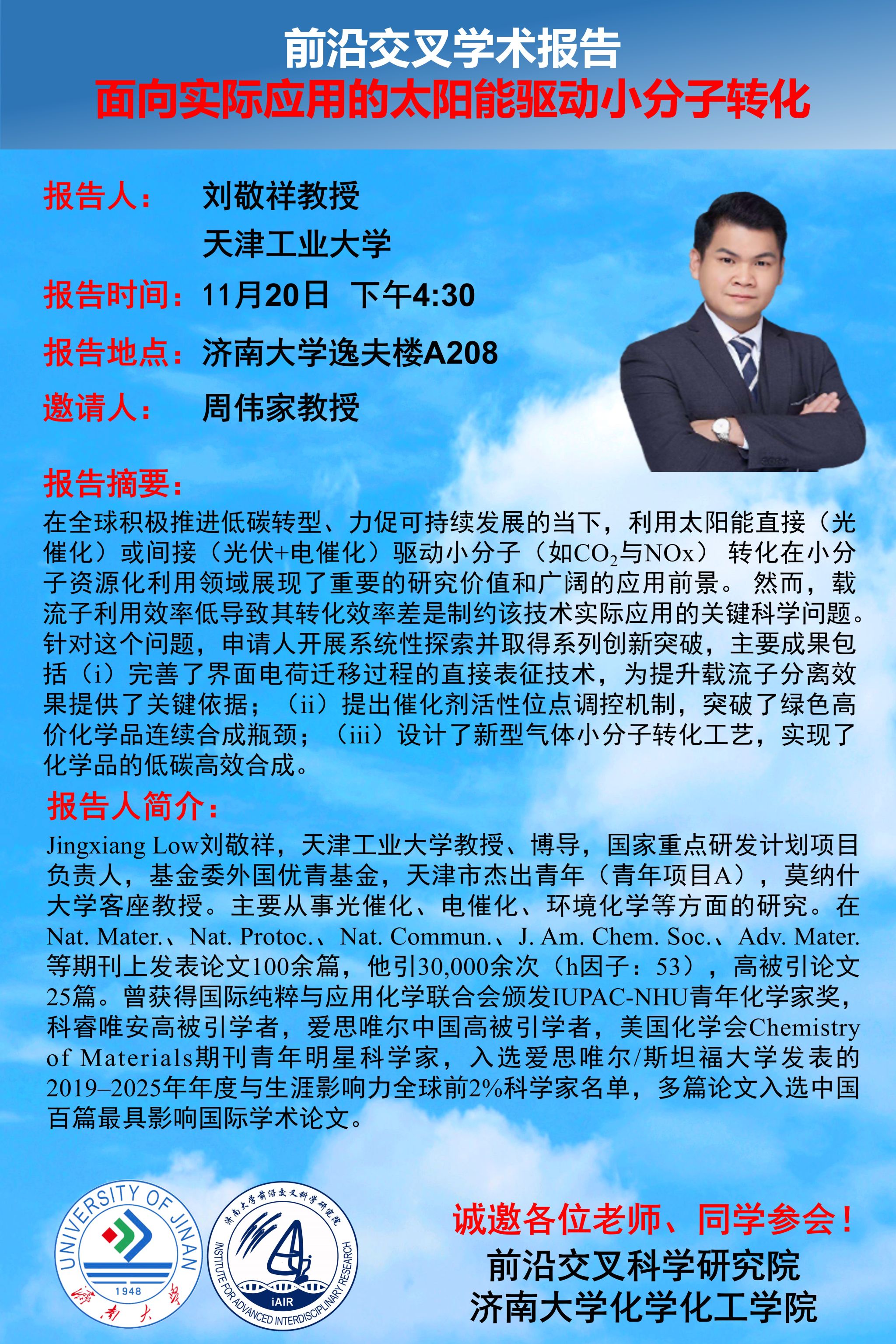 前沿交叉学术报告 | 面向实际应用的太阳能驱动小分子转化