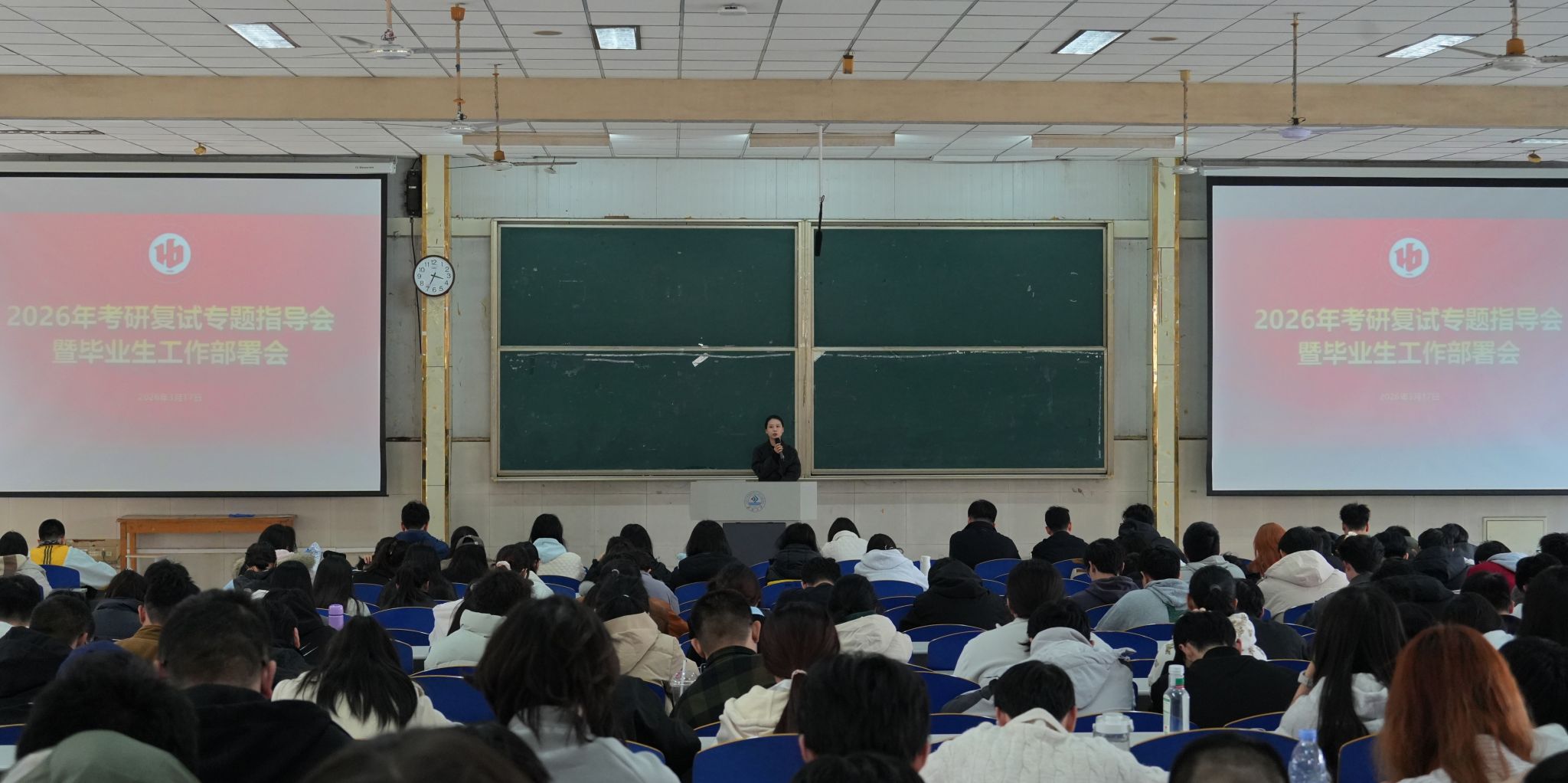 为精准对接2026届毕业年级学生发展需求,切实解决学生在考研复试、就业择业及毕业关键环节中的实际问题,3月17日,jinnian金年会召开2026年考研就业工作推进会,学院党委副书记、副院长白雪飞,副院长张彦及全体辅导员出席会议,全体2026届本科毕业生参会。