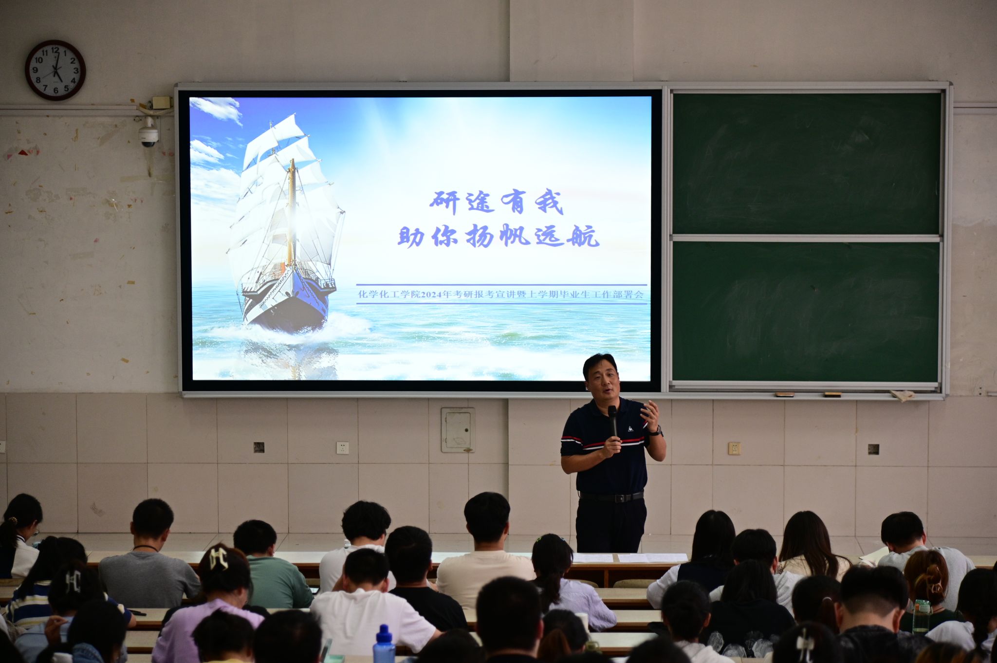马廷滨结合往届考研典型案例,从院校选择、考研与就业的关系、考研各科目备考策略等方面,给同学们提供了解决难题的真招、实招、妙招。他指出,目前距离考研不足三个月时间,同学们应梳理想法、坚定目标,调整心态积极备考,同时要加强体育锻炼,注重劳逸结合。同时针对同学们的迷茫点、困惑点、纠结点,逐一梳理分析解答,引导同学们将考研意志与考研行动相统一,引导学生在备考过程中及时调整复习策略,将复习实效最大化。