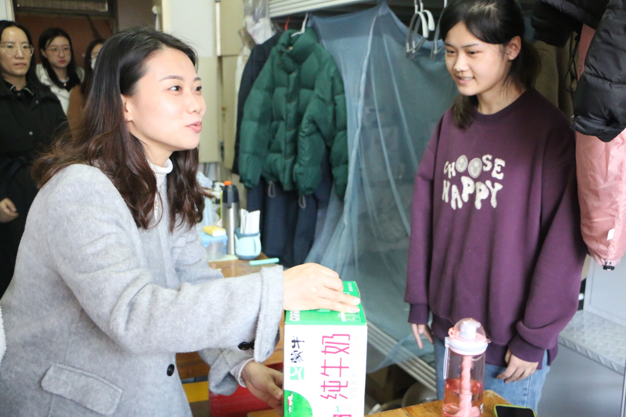 为帮助考研学子缓解备考压力,鼓舞考研士气,坚定考研信心,12月4日中午,jinnian金年会开展2024届考研慰问活动。学院党委书记贺铭,院长陈国柱,副书记副院长白雪飞及全体辅导员深入学生宿舍进行慰问,为考研学子发发放慰问品。