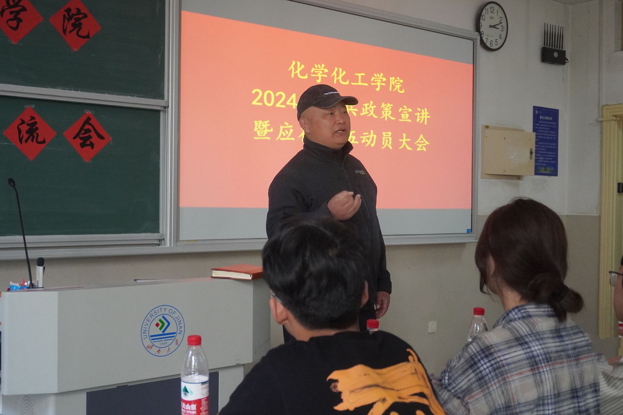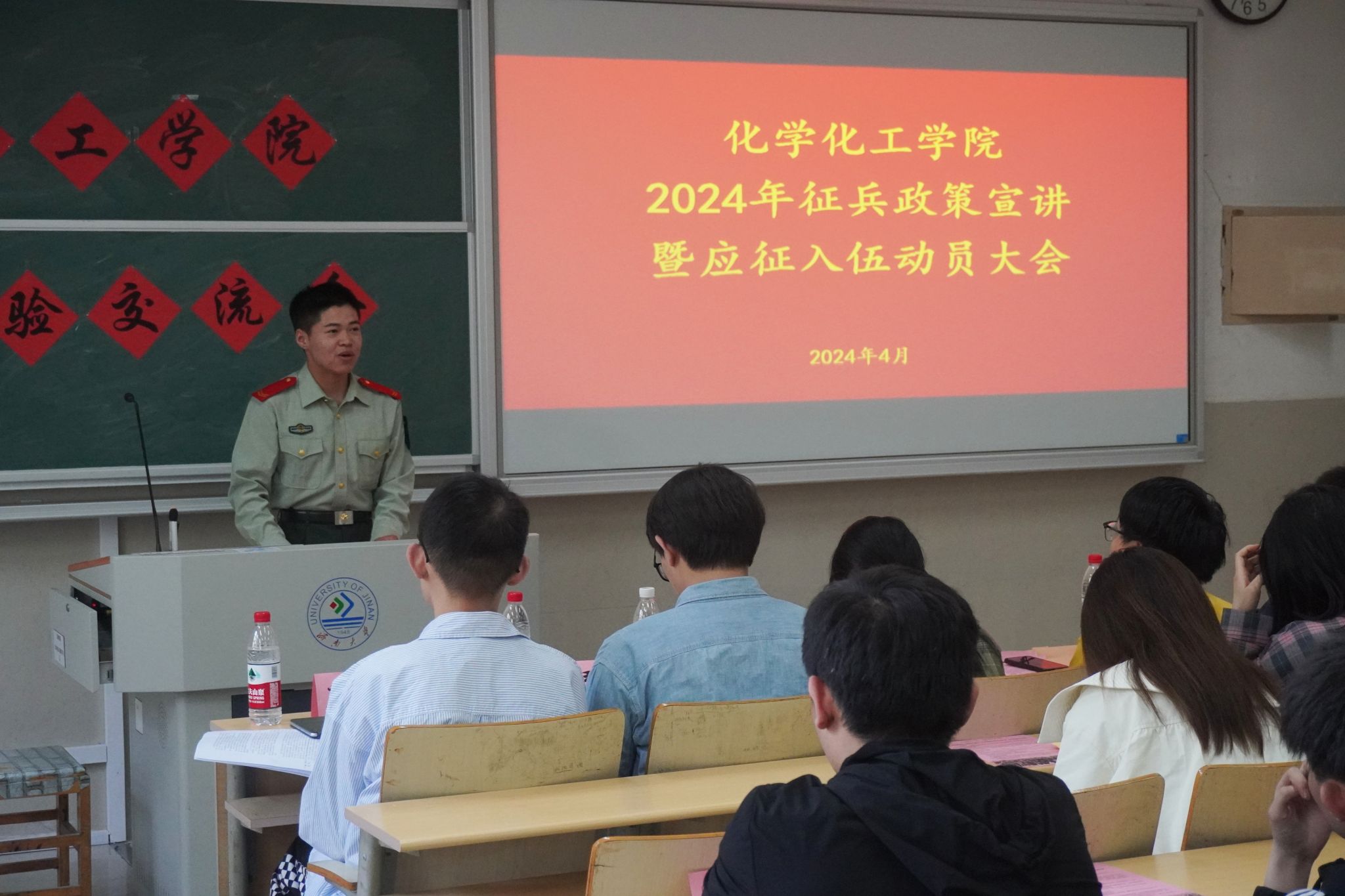 为贯彻落实国家征兵政策,扩大征兵政策宣传的影响力和辐射面,进一步鼓励和引导大学生应征入伍,4月16日和18日,jinnian金年会组织召开“志存高远砺青春·建功立业强军梦”2024年征兵政策宣讲暨应征入伍动员大会。学校党委武装部人武科科长李英武,学校第4届教导大队退役大学生应化2105刘杰、材料2212颜旭、化学2302卢国琰、环工2304王镇彬担任主讲人,学院学生工作办公室相关负责老师出席此次活动。