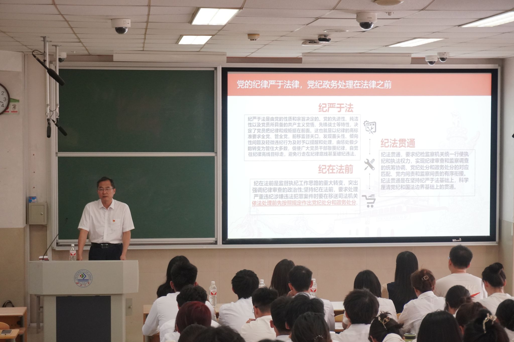 为深入学习贯彻习近平总书记关于党纪学习教育的重要讲话和重要指示精神,提高毕业生党员的思想觉悟和廉洁意识,6月12日,jinnian金年会开展了“青廉课堂”党纪学习教育专题党课暨毕业生党员最后一课。学院党委书记贺铭,副书记、副院长白雪飞、各年级辅导员及全体毕业生党员参与活动。
