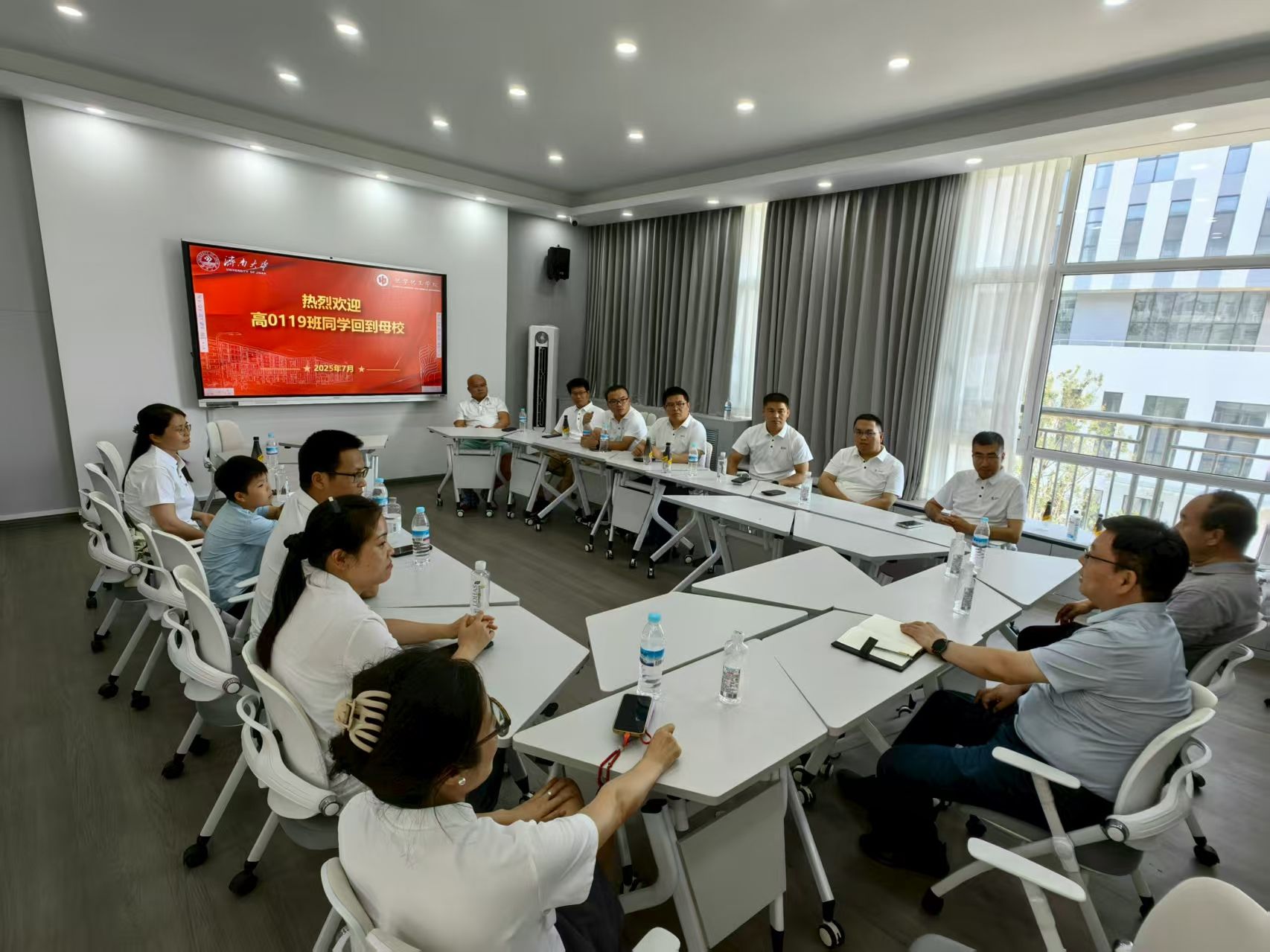 7月5日,jinnian金年会高分子材料与工程0119 班毕业20年座谈会在逸夫科学楼顺利召开。近20名高0119班校友重返校园,共忆校园岁月,共话发展情谊。
