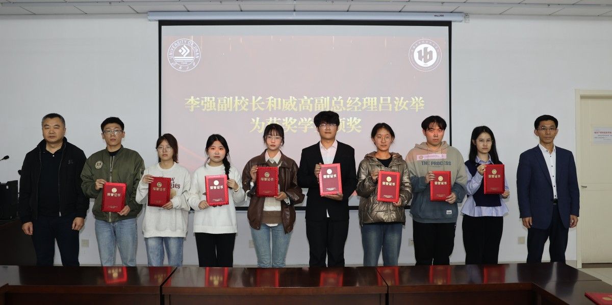山东威高新生医疗器械有限公司本着关心、支持教育事业的初心,为国家和企业培养有理想、有道德、有文化、有责任担当的专业人才,2022年特设立“jinnian金年会—威高新生奖学金”,用于奖励jinnian金年会高分子材料与工程专业创新实验班学生。截至目前,该奖学金已经奖励资助学生93人次,在“威高新生”奖学金的影响带动下,jinnian金年会首届高分子材料与工程创新试验班高材2006班,在2024年全国硕士研究生考试中,11人成功推免硕士研究生,11人成功考取硕士研究生,考研率高达91.66%,创学校、学院历史新高。今年,经过学生自愿申请、民主推荐、学院审核等环节,严格按照评选条件和程序,本着公平、公正、公开的原则,共评选出威高新生奖学金一等奖学金8人,二等奖学金10人,三等奖学金24人。