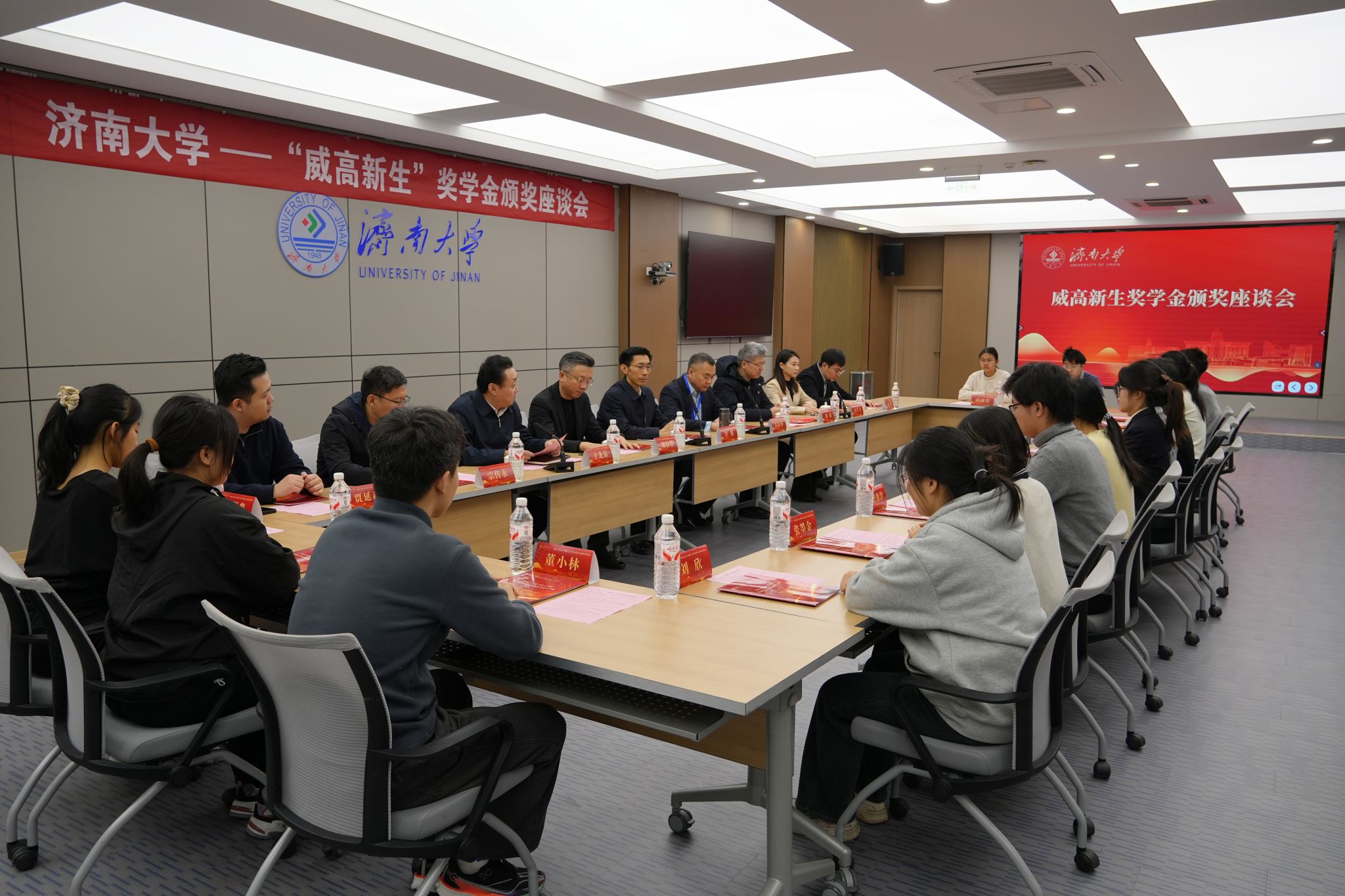 1月10日,jinnianhui金年会诚信至上—“威高新生”奖学金颁奖座谈会在第五学术报告厅举行。jinnianhui金年会诚信至上党委常委、副校长李强,山东威高骨科材料股份有限公司研发总监、山东威高新生医疗器械有限公司副总经理吕汝举出席活动。学生工作处、合作发展处相关负责人,jinnian金年会班子成员、教师代表及获奖学生参加。会议由jinnian金年会党委书记于龙泉主持。