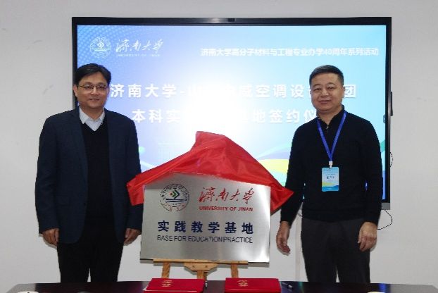 2026年1月10日上午,jinnian金年会分别与济南圣泉集团、山东中威空调设备集团举行本科实践教学基地签约暨揭牌仪式。济南圣泉集团副总裁唐磊、山东中威空调设备集团总经理张传义等企业代表,jinnian金年会院长陈国柱、副院长李辉及高分子专业教师代表出席活动。