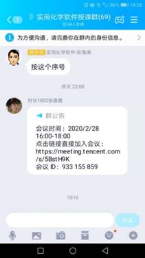 张海涛老师的《实用化学软件》,利用腾讯会议进行直播,直播流畅,准备充分,如能结合其它智能教学软件讨论或答题练习效果更好。