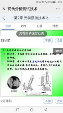 6. 钉钉直播和雨课堂互动相结合的授课方式,钉钉直播的优势在于播放流畅且学生课后可以看课程回放,老师还能监控到每个学生的观看时长。老师对于课程做了多种预案,准备充分,课件图文并茂,动画演示效果好,并能够结合实际应用和科研讲解显微镜的应用,课堂气氛活跃,学生全部在线听课并有积极互动。