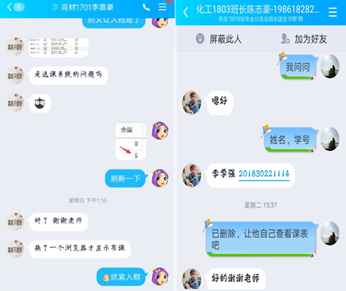 1)教学办教师全天在线,通过电话、QQ、微信等通讯手段远程指导学生选课,及时解决学生在选课过程中遇到的各种问题。