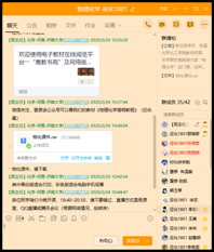 物化中心何畏教授经过前期精心准备,提前十分钟打开雨课堂,播放背景音乐供学生定位,并通过弹幕了解学生们收看是否清晰,确认之后在18:40准时开始上课。整个过程非常顺利,学生反映流畅清晰。