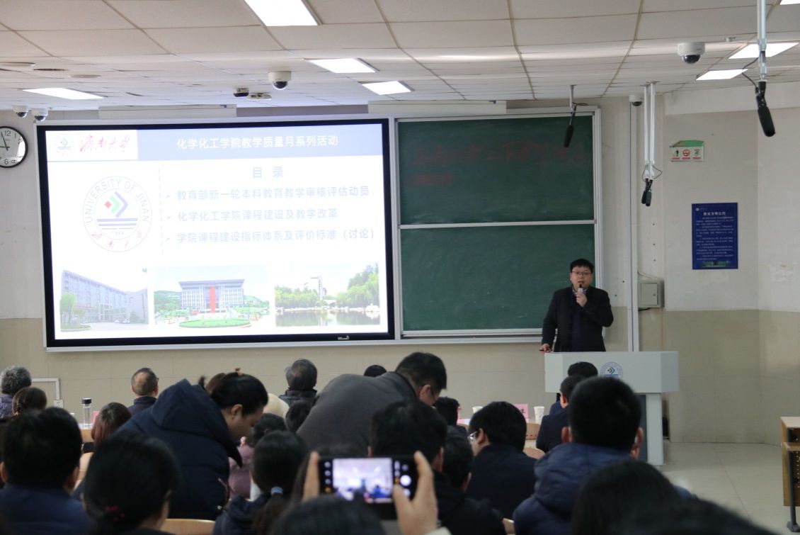 学院副院长李辉以《提升课程建设水平,全面推进课堂教学改革》为题,就新一轮本科教育教学评估工作做了全面动员,对近几年学院课程建设及教学改革取得的成果做了梳理,对未来面临的课程改革问题提出了新的思考,并对学院课程建设指标体系及评价标准(讨论稿)做了解读。