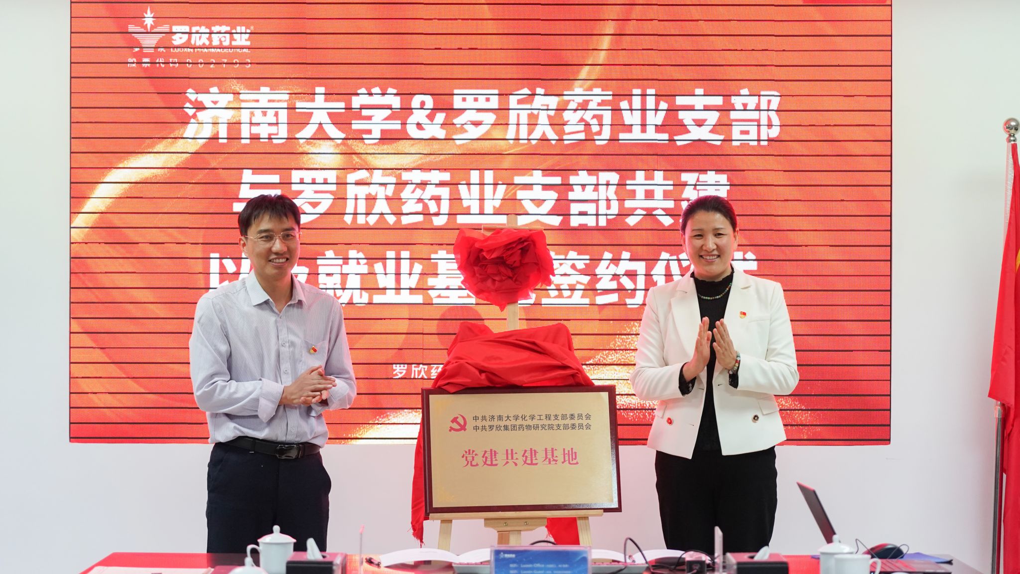 中共jinnianhui金年会诚信至上人力资源处支部委员会与中共罗欣药业集团管理中心支部委员会,中共jinnian金年会化学工程支部委员会与中共罗欣药业集团药物研究院支部委员会,签署校企党建共建协议并揭牌。学校与罗欣药业集团股份有限公司签署就业实习基地协议并揭牌。