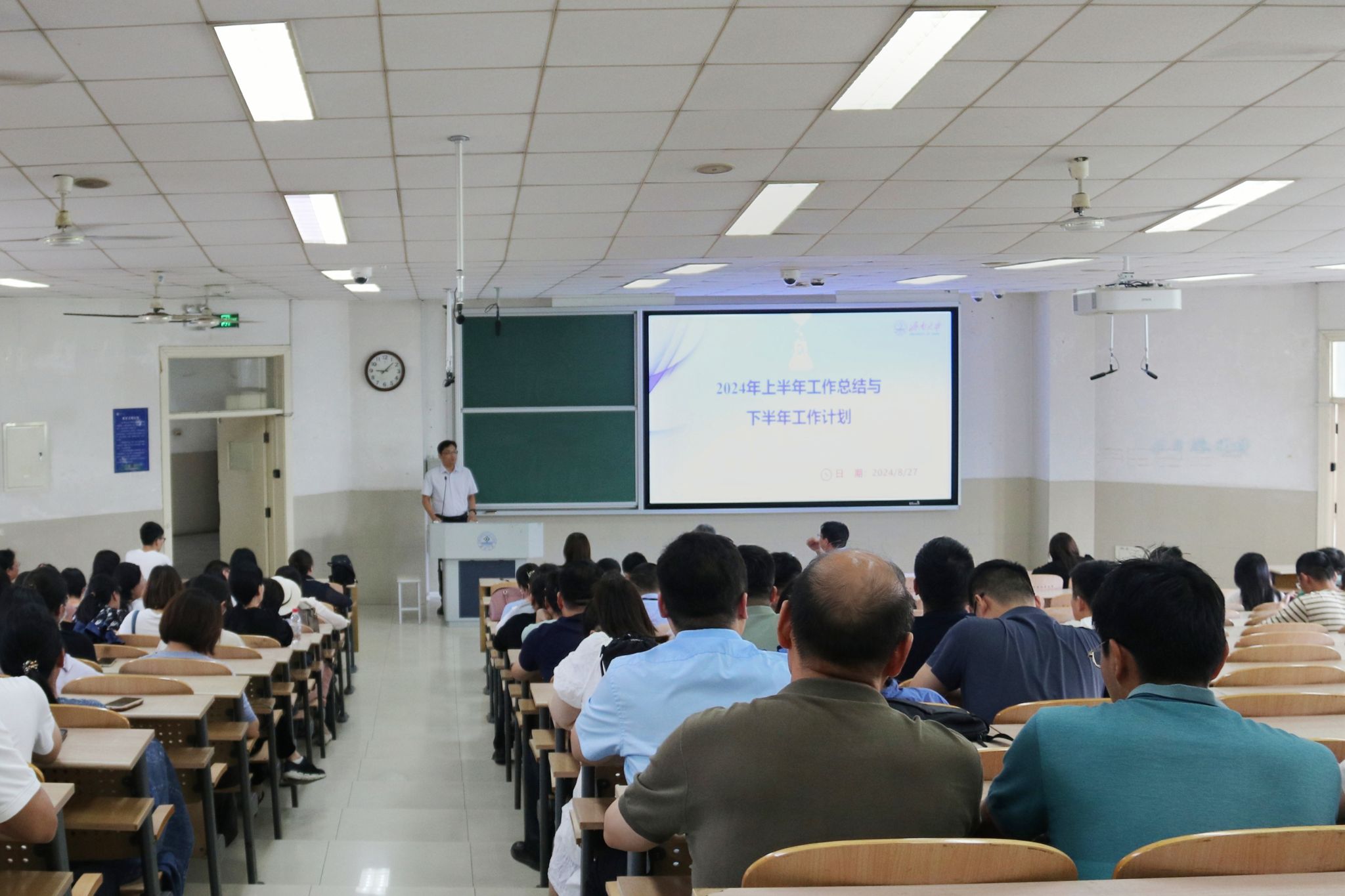 8月27日,jinnian金年会召开新学期全体教职工大会,传达学习学校四届五次全委会扩大会议精神,部署学院各项工作。学院班子成员、全体教职工参加会议,会议由学院党委书记贺铭主持。