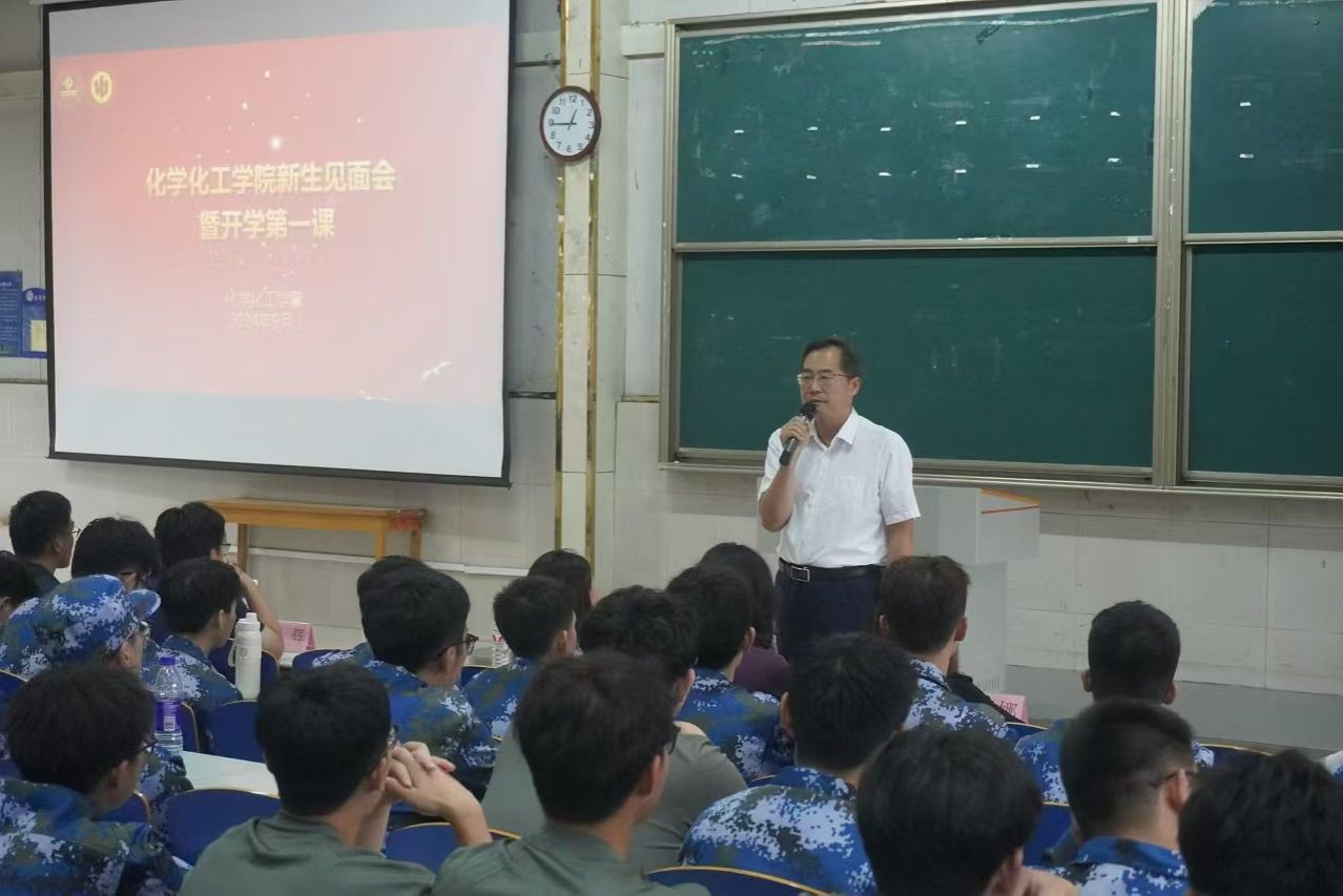 院长陈国柱向新生们开启人生新旅程、学习新篇章、生活新体验表示祝贺,向2024级新生介绍了学校的历史沿革、办学特色及学院的具体情况,并围绕学院专业情况、实验设施设备、科研论文情况、对外学习交流等方面介绍了学院的发展历程和近年来取得的突出成绩,勉励广大新生以杰出校友为榜样,在科创学术、专业学习的道路上勇创佳绩,最后,他寄语新生“同心共济,大有作为”,用理想信念照亮四年前行之路。