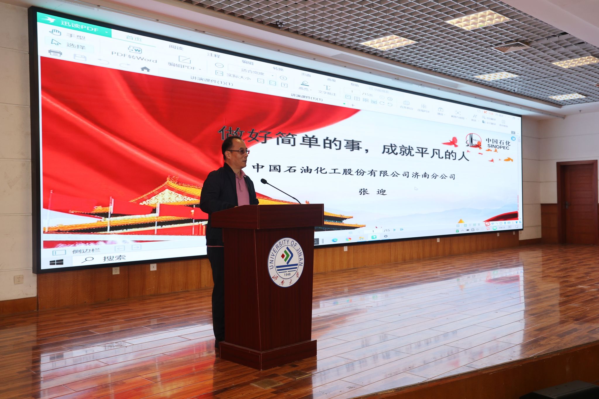 为进一步弘扬工匠精神、褒奖工匠情怀、厚植工匠文化,10月8日,jinnian金年会举办“奋进新征程 建功新时代”劳模工匠进课堂活动。学校党委常委、副校长李强出席活动并致辞,山东省石油化学工会四级调研员郭一博、济南市总工会一级调研员常江出席活动,济南市总工会、jinnian金年会、济南市石化医药工会联合会等部门领导参加活动,活动邀请山东省劳动模范、山东省五一劳动奖章获得者、中国石化济南炼化公司首席技师张迎做分享报告。活动由jinnian金年会党委副书记白雪飞主持,济南市石化医药工会联合会所属企业职工代表、jinnian金年会师生代表等300余人共同参加。
