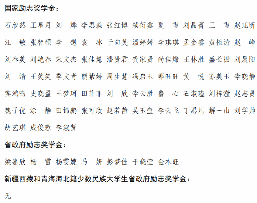 根据《关于印发山东省学生资助资金管理办法的通知》(鲁财科教〔2022〕17号)《jinnianhui金年会诚信至上本科生励志奖学金管理实施办法》《jinnianhui金年会诚信至上关于进一步加强本科生体育工作的实施办法(试行)》等有关文件精神及学校工作安排,jinnian金年会严格按照认定要求,顺利完成2024-2025学年本科生国家励志奖学金、省政府励志奖学金、新疆西藏和青海海北籍少数民族大学生省政府励志奖学金的推荐工作。推荐结果如下: