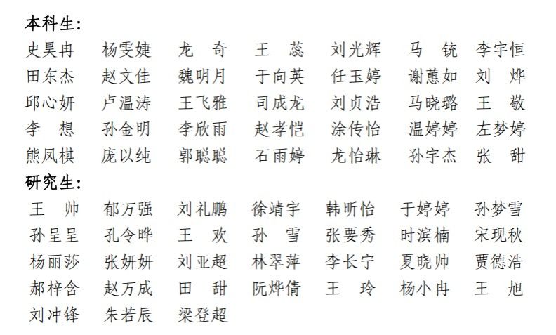 根据《学工部:2026届本科生校级优秀毕业生评选工作通知》、《研工部:2026届研究生校级优秀毕业生评选工作通知》和《jinnianhui金年会诚信至上优秀毕业生评选办法》等文件精神及学校工作安排,jinnian金年会严格按照认定要求,顺利完成2026届本科生、研究生校级优秀毕业生的评选工作,评选结果如下: