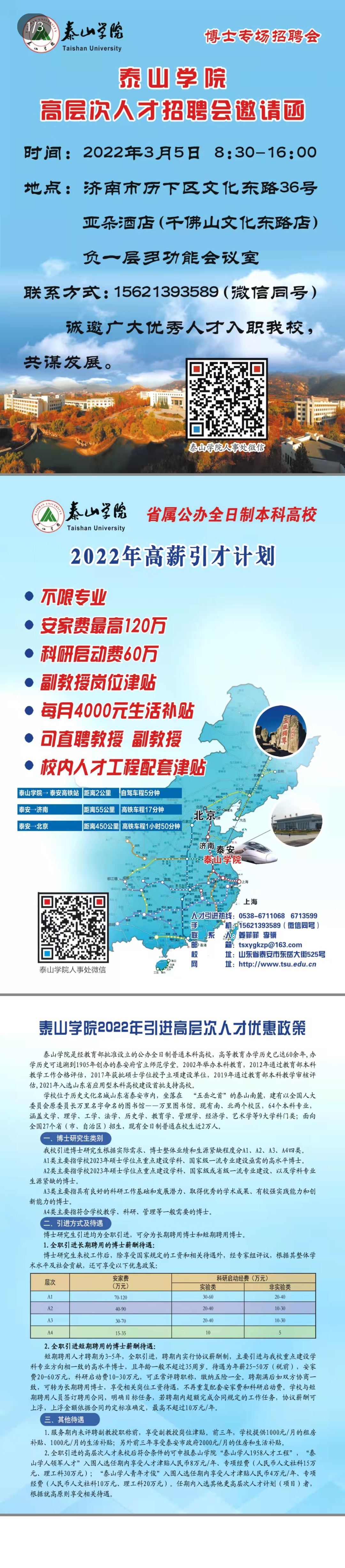 泰山学院高层次人才招聘会邀请函