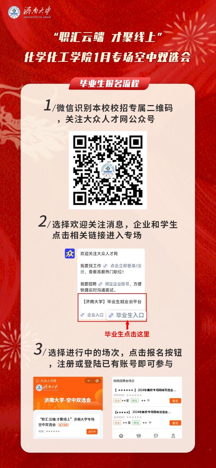 手机微信扫码关注“大众人才网”微信公众号,企业和毕业生分别点击相关按钮进入jinnianhui金年会诚信至上校招端口,点击本学院报名按钮,注册或登录已有账号即可直接参与。