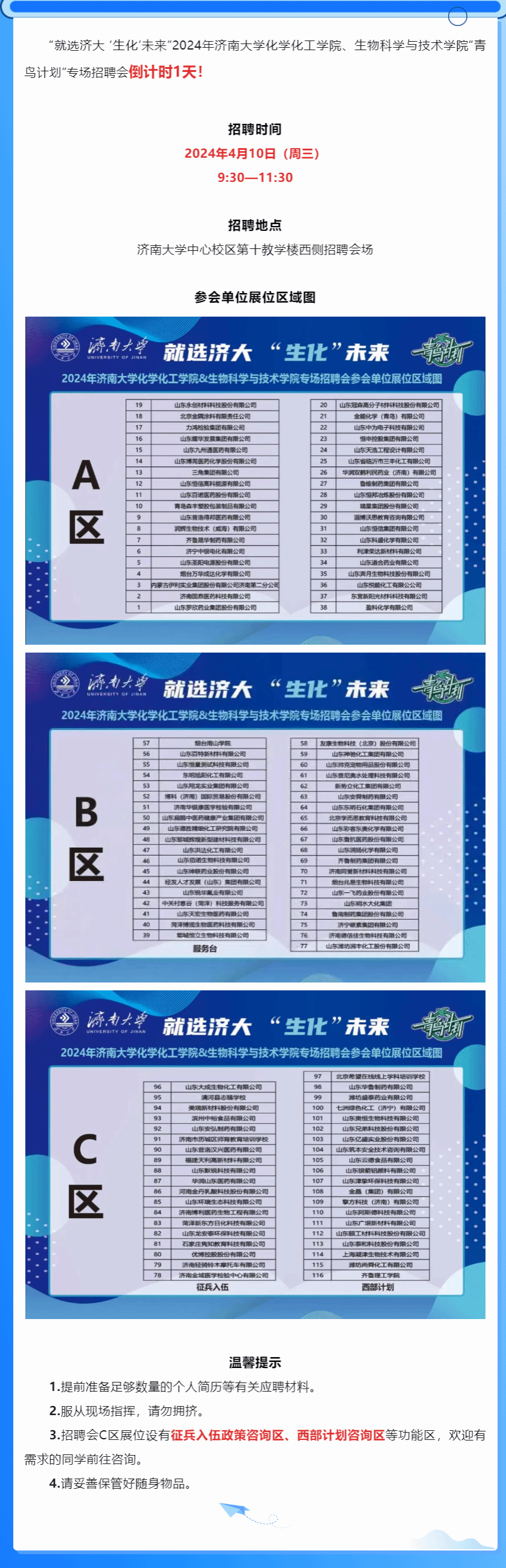 就选济大• “生化”未来——“青鸟计划”专场招聘会