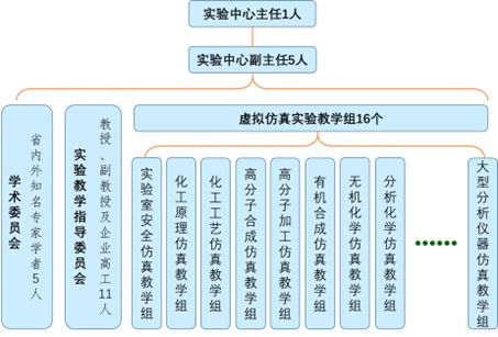 实验教学中心设立学术委员会,由省内外知名专家学者5人组成,负责指导中心的发展和建设。中心设立实验教学指导委员会,由中心聘请教学、科研及工程经验丰富的教授、副教授及企业高级工程技术人员等担任成员。实验教学中心设主任1人、副主任5人,中心下设16个实验教学组,开展经常性的虚拟仿真实验教学研讨活动,交流教学经验,探讨教学中的问题和不足,加强课程建设、教材建设和实践基地建设。